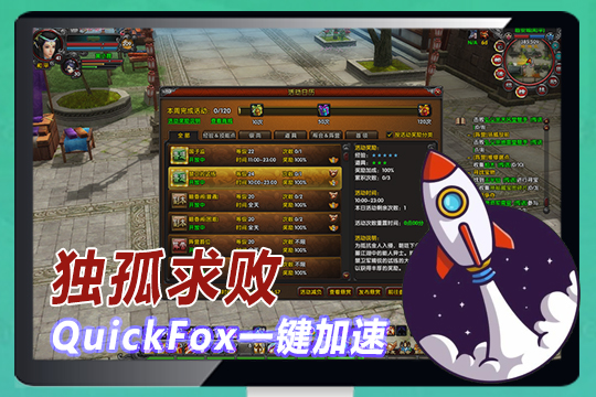 250ms以上对于独孤求败这种网络游戏来说就完全是卡的了,可能会出现无法操控,海外玩独孤求败加速的解决办法,国外有适合连回独孤求败国服的VPN吗?《独孤求败》是以中国古代传统文化、民俗风情、历史背景和部分真实的中国地理环境为基础,加入金庸武侠世界观(根据《射雕》进行相关延伸处理)及其表达的武侠思想,并少量引入相对适合武侠世界的玄幻元素来丰富世界设定。《独孤求败》这款角色扮演的2.5D游戏在PC电脑平台运行,加速独孤求败最好的解决办法是使用网络加速器。通过虚拟通道反向翻墙VPN直接连接到国内服务器节点,省去了很多网络传输的中间环节,可以有效降低延迟,提升游戏体验。当然你自身的网络要足够稳定和快速才能起到最好的效果。QuickFox解锁地区限制,加速国内影音和游戏,海外华人翻墙回国首选VPN
