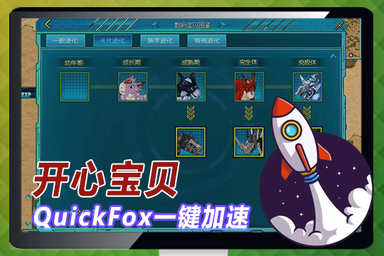 250ms以上对于开心宝贝这种网络游戏来说就完全是卡的了,可能会出现无法操控,海外玩开心宝贝加速的解决办法,国外有适合连回开心宝贝国服的VPN吗?随着网络世界的日益发展,数码世界也越加完善,但是现实世界的大量黑客在网络世界肆意的散播病毒进行网络犯罪行为,导致数码世界受到波及,大量的数码宝贝被病毒感染,性情变得十分好战并且狂暴,他们到处攻击尚未被感染的数码宝贝,从而促使数码世界划分为两大阵营。未被感染的数码宝贝阵营为善良数码宝贝,已被感染的数码宝贝阵营则为邪恶数码宝贝。《开心宝贝》这款角色扮演的2D游戏在PC电脑平台运行,加速开心宝贝最好的解决办法是使用网络加速器。通过虚拟通道反向翻墙VPN直接连接到国内服务器节点,省去了很多网络传输的中间环节,可以有效降低延迟,提升游戏体验。当然你自身的网络要足够稳定和快速才能起到最好的效果。QuickFox解锁地区限制,加速国内影音和游戏,海外华人翻墙回国首选VPN