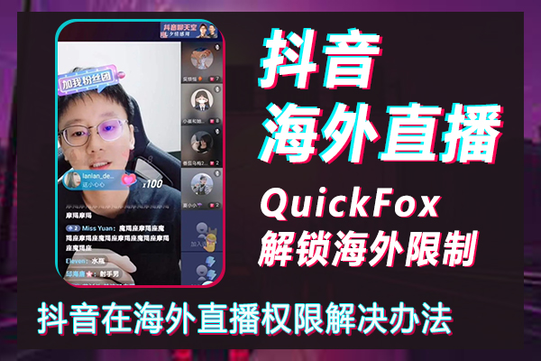 依照上述步驟操作,在抖音這邊沒有修改規則的前提下,海外播主用QuickFox可解鎖抖音海外直播怎麼播好、怎麼在國外打開抖音直播、海外怎樣開抖音直播間、抖音在國外怎樣關直播等問題。